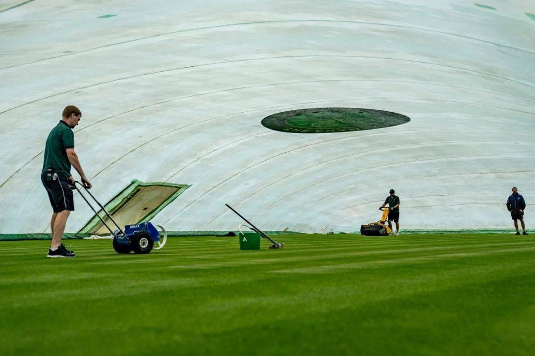 准备工作中,草地的草每天都需要修剪,保持在 8 mm