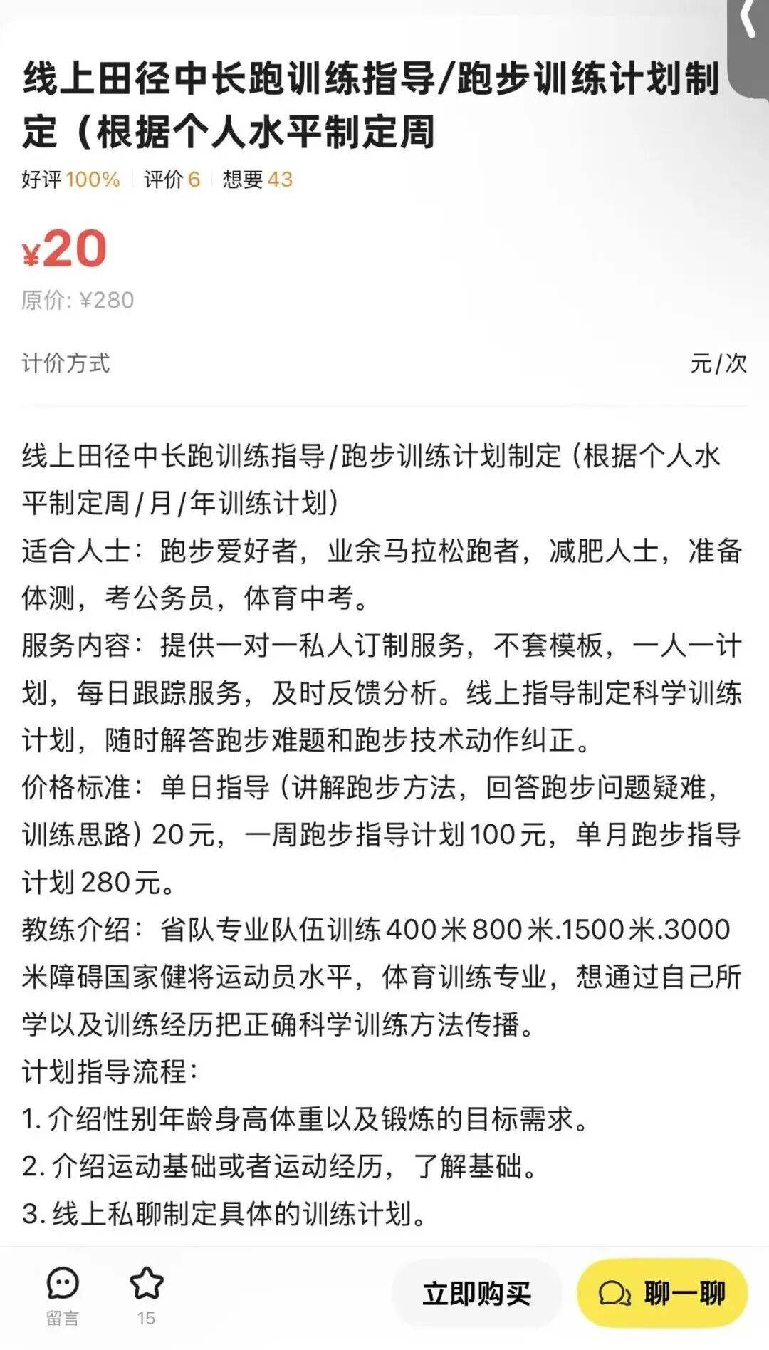《北京商报》记者调查发现,马拉松教练通常按课时收费,一小时为一个课时,每小时收费在400—800元。要是连续报10节课,能享受3000~5000元的优惠价。