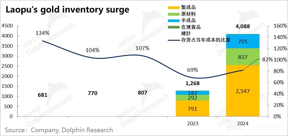 海豚君在老铺黄金上篇的分析中,重点从定价&经营模式上分析了老铺一口价为主的商业模式,以及它与奢侈品的区别。 接下来我们重点来分析一下老铺在黄金饰品都有一口价这种做法的情况下: a) 老铺如何异军突起? b) 作为大流水额消费品,越赚钱越穷,是怎么回事?如何影响价值判断? c) 一年十倍后,怎么看老铺未来的长大空间? 我们在本篇进一步分析。 一、差异化玩法:古法手工——红海市场中 “淘出” 的蓝海赛道 在老铺横空出世前,传统黄金首饰以婚庆市场和保值需求为主,面向大众市场,同质化严重且各品牌之间厮杀激烈。 而从珠宝首饰行业看,众多包括卡地亚、蒂芙尼、宝格丽在内的奢侈品品牌则普遍以钻石、珍珠,K 金等材质为主。 传统的足金(含金量>99%)由于纯度高、硬度低,难以镶嵌钻石及其他复杂造型,因此长期被贴上 “低端材质” 的标签,极少被纳入高端产品线,更不用说是奢侈品,也就是说,纯金材质在高端珠宝首饰市场上实际是缺失的。 所以老铺的聪明之处在于从一开始就放弃了传统金饰的大众市场,侧重古法黄金工艺切入差异化,开辟了黄金的高端细分市场,Slogan 简单而清晰——“中国古法手工金器”。 就像 Lululemon 在运动服装领域从瑜伽裤的细分赛道入手,通过面料的创新解决了传统健美裤延展性不够、吸湿排汗性差的痛点,老铺的成功很大程度源于通过古法金工艺和传统的文化元素设计相结合,解决了传统黄金首饰同质化程度高、缺乏设计感的痛点。/strong> 所谓古法工艺,其实并非老铺的独创,简单来说是一种传承中国传统宫廷造金工艺的加工方法,包括花丝、錾刻、鎏金、烧蓝等一系列复杂工艺,且由于部分加工步骤需要熟练工匠手工制作,因此古法工艺通常较代工模式批量生产的传统金饰更为耗时,但独特性更强。 从产品上看,古法工艺制造的黄金饰品设计感强、具有传统中国文化属性又兼具时尚调性,高颜值,相较于钻石、珍珠等材质也更加保值,一句话概括就是老铺想要讲的故事是 “黄金有价,但美感无价”。 当然,古法工艺本身并不构成核心壁垒,也非老铺独创,但老铺作为 “第一个吃螃蟹的人”,拥有先发优势,而且要想真正构建长期护城河,还是用时间来换心智,慢慢积淀起 “老铺=奢侈品” 的心智。 二、控产能、控渠道、养铁粉 有了差异化的定位和兼具设计感&文化属性的产品是基础,想要建立高端甚至奢侈品的品牌心智,关键的一步就在于营造稀缺性,老铺也深谙其道,把奢侈品打法玩得轻车熟路。 a)产能控制 不同于传统金饰公司一般采用 OEM 代工模式,自身只负责产品设计和品牌推广,老铺 2018 年在湖南岳阳建立了自有工厂(2018 年前全部为代工生产),目前自产比例接近 60%,在行业内属于较高水平。 根据招股书信息,老铺自产的品类为具备高溢价的核心产品和新品,确保了核心工艺(花丝镶嵌、古法铸型)和产品的自主控制权,仅有过季款式和工艺复杂度较低的产品采用代工生产,缓解旺季的产能压力。 但尽管如此,海豚君结合一些调研信息了解到,目前深圳的代工厂可以为周大福、周大生等品牌提供相同的工艺。以足金镶嵌宝石为例,工艺难点在于足金黄金质地较软,易导致宝石脱落,老铺通过工艺创新解决了这一技术难题,但基本 2-3 个月后,同行就推出了相似工艺的产品,说明仅从工艺上讲老铺只是一个时间差优势,并不存在长期的壁垒。 在海豚君看来,老铺后端生产真正的优势在于,设计 - 研发 - 生产环节高度自控所带来的快速生产响应,调控供给的销货控盘能力。 根据招股书,老铺的创始人徐高明亲自带队 12 人的研发团队参与产品的体系化研发,设计师薪酬是行业平均水平的 3 倍以上并通过大额股权激励深度绑定设计团队人员,高激励体制下,老铺每年迭代和新品推出产品总数超 200 款,推新频率远超同行。 另一方面,老铺的自有工厂可以快速响应设计需求,确保设计理念与工艺实现的高度一致性,避免了代工模式中常见的产品落地偏差、延期交付等问题。 在高度自控的垂直一体化闭环生产下,无论是每年推出的新品还是经典老款,老铺基本都是小批量生产,部分热门款比如 “花丝葫芦”、“苹果珠手链” 等。甚至经常出现 2-3 个月阶段性短缺,老铺把这一切归结为工艺的复杂性。 而实际上,根据招股书披露,老铺的核心产能是熟练工匠,负责指导普通技工完成大部分产品的生产以及亲自处理技术难度较高的加工工序。 从下图可以看到,熟练工匠的人数 2023 年开始大幅增长,正好对应老铺需求端的爆发,而产能利用率也刚刚好控制在 100% 左右。 因此,在海豚君看来,老铺产品稀缺的本质来源于在生产自控 + 渠道自控的双链条下,老铺通过自行供需匹配、产能控制营造了奢侈品 “限量供应” 的稀缺氛围。
