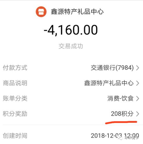 每项都有上限。所以,各位请安排好消费方式以及规划好理财方式,有时候拼消费很有可能是不累计积分的。如下图,支付宝支付4160元,按照20:1,累计了208积分,消费后积分自动到账,注意消费送积分的上限每月600分。