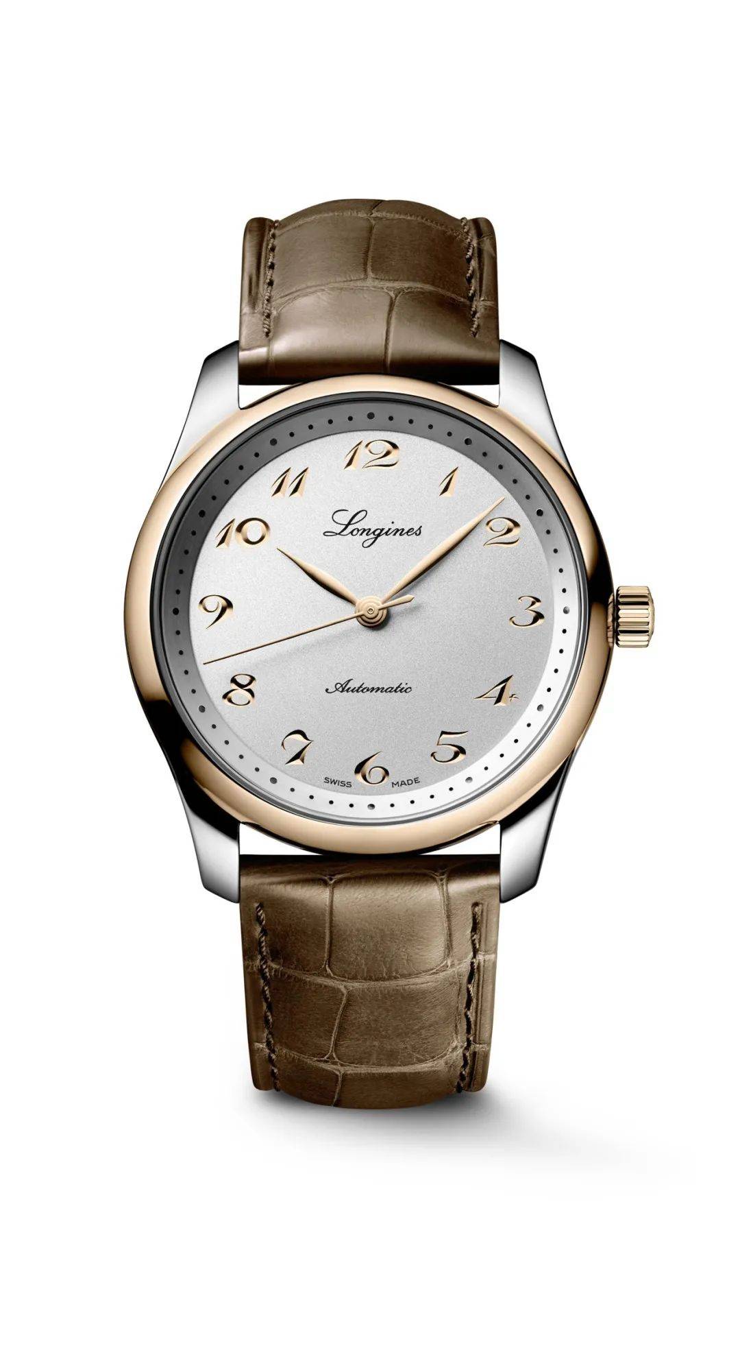 全新浪琴表名匠系列腕表 腕表编号:L2.793.5.70.2 建议零售价:RMB 23,800 名匠系列,充分彰显浪琴表的精湛制表工艺与隽永优雅风格。该表款搭载浪琴表专属机芯L888.5,内置硅游丝与非磁性材质制成的创新组件。自动上链机械机芯透过透明表底盖清晰可见,动力储备可达约72小时。防水深度达 3 巴(30 米),40毫米直径的双材质表壳覆有 18 K玫瑰金,并配有同色表冠。银色喷砂表盘上,镌刻有12个玫瑰金色阿拉伯数字,搭配同色系的柳叶形指针,用以标示小时。分钟刻度位于表盘边缘处。该表款搭配质感柔软的棕色皮革表带,采用三折式安全表扣和按压开启式装置。