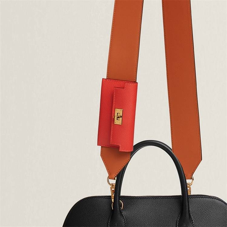 爱马仕近期推出的「Kelly Pocket」肩带50毫米,是一款结合卡夹与肩带的作品,其宽幅的皮革肩带,让包袋不只能优雅的手提,同时也能轻松地上肩,其间带上以凯莉包为设计灵感的卡包,以符合当代使用情境,能装得下任何交通卡、信用卡等物件。 Hermès「Kelly Pocket」亮点2:双重皮革的运用